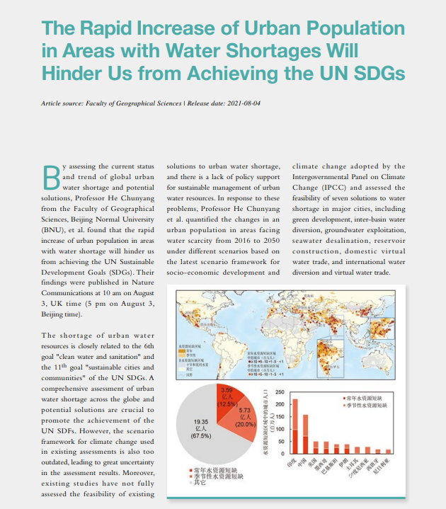 The Rapid Increase of Urban Population in Areas with Water Shortages Will Hinder Us from Achieving the UN SDGs