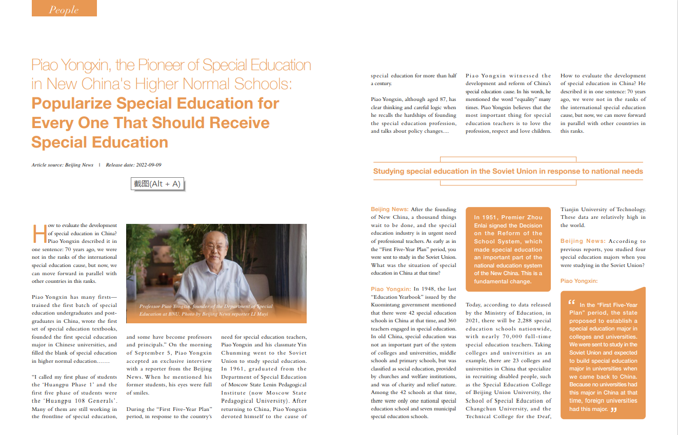 Piao Yongxin, the Pioneer of Special Education in New China's Higher Normal Schools: Popularize Special Education for Every One That ...