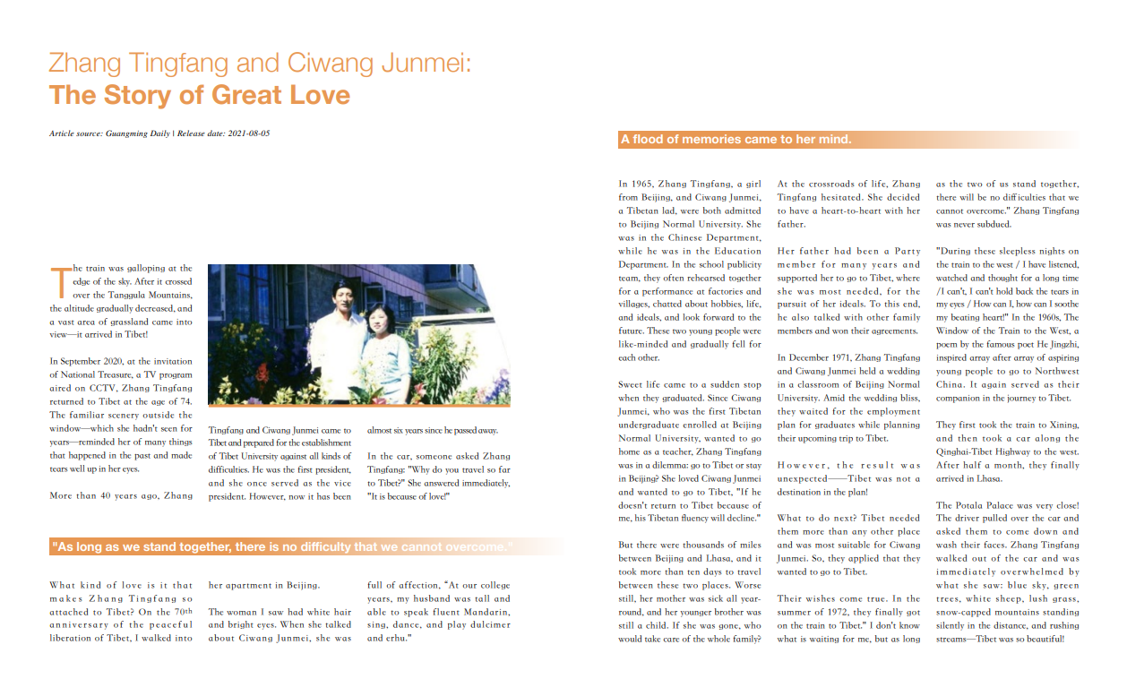 Zhang Tingfang and Ciwang Junmei: The Story of Great Love