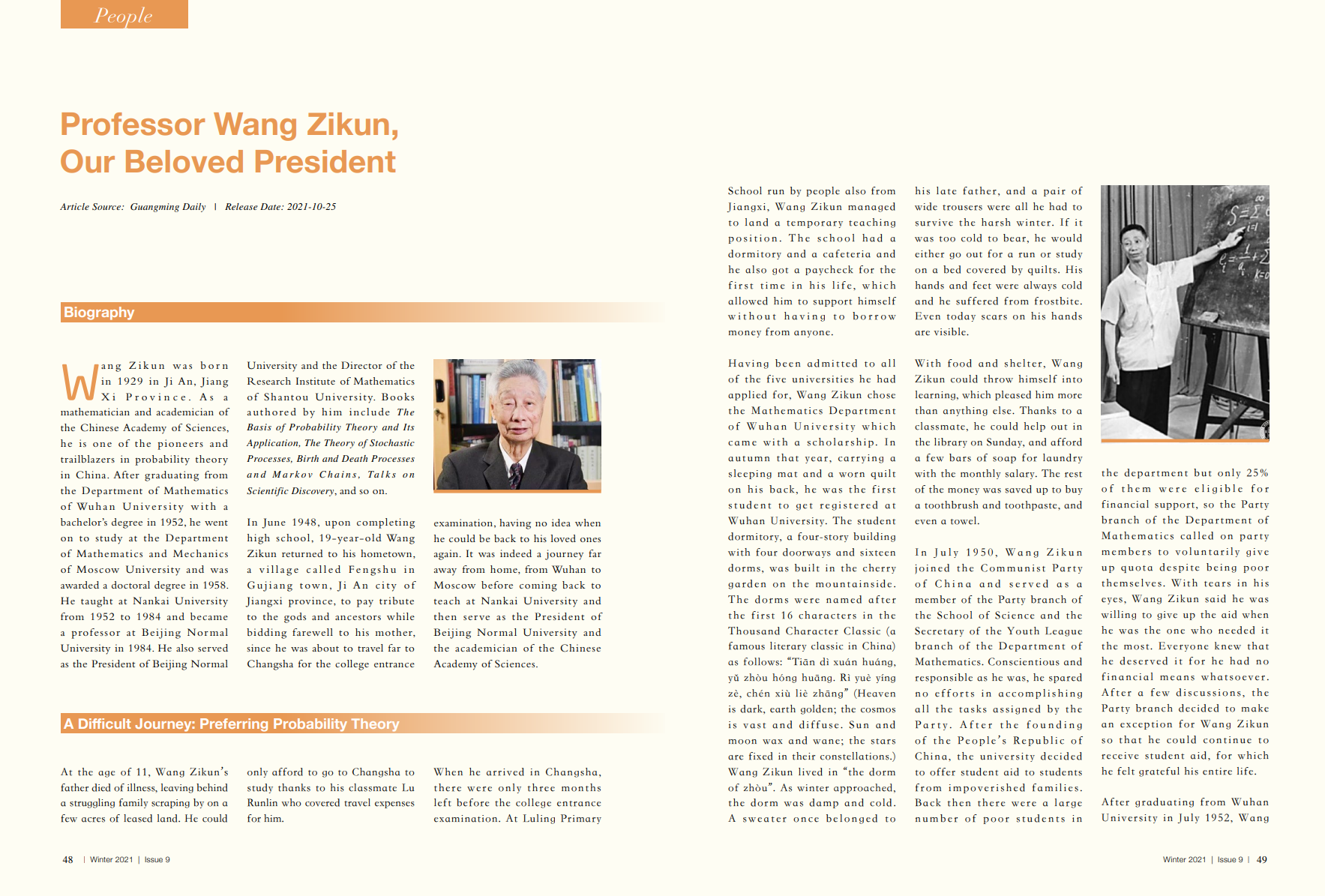 Professor Wang Zikun, Our Beloved President