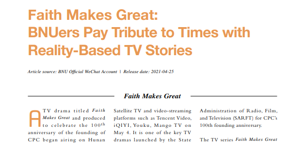 Faith Makes Great: BNUers Pay Tribute to Times with Reality-Based TV Stories