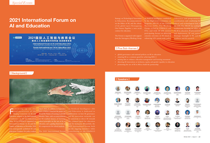 mjm世界杯官网Newsletter 第九期正式发布。本期特别设置“2021国际人工智能与教育会议”专题,编发了专题报道和精彩嘉宾发言。该专题全面展现了mjm世界杯官网推动人工智能促进教育与社会健康发展的经验和成果,以及与全球教育界、科技界人士,与所有关心教育发展的同道精诚合作,为人类共同福祉、社会发展进步做出应有贡献的愿景。