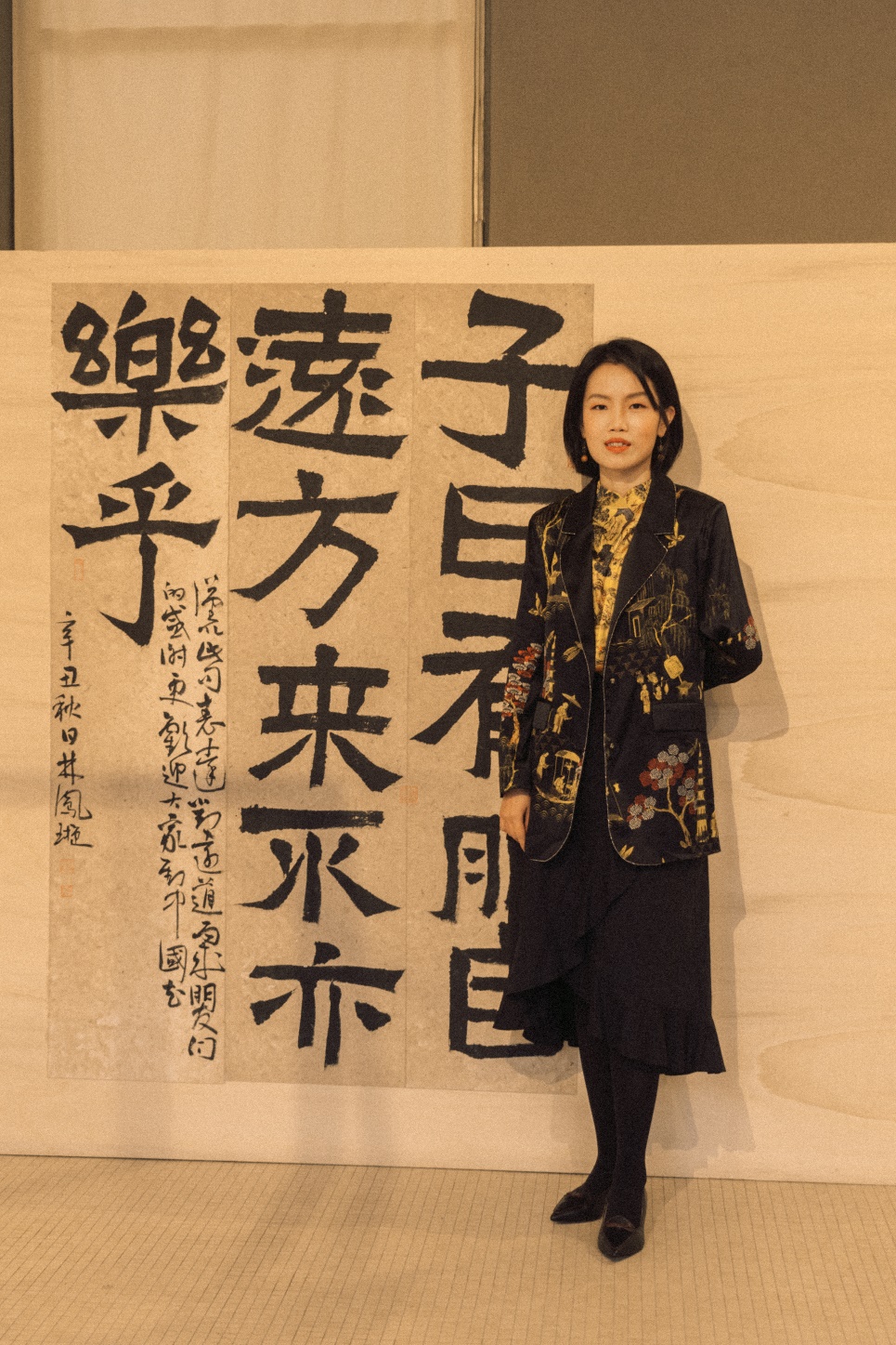 林凤璇老师在致辞中感谢了孔子学院、市政府、Magma博物馆、何平老师及其丈夫柯明道先生等各方面的支持与帮助,非常荣幸能有此机会展示汉字之美、中国文化之美,欢迎大家的到来。此次展览作品均为这一两年间所创作,有对中国文化的思考,也有对意大利文化的致敬,希望中意两国保持交流,友谊长存。