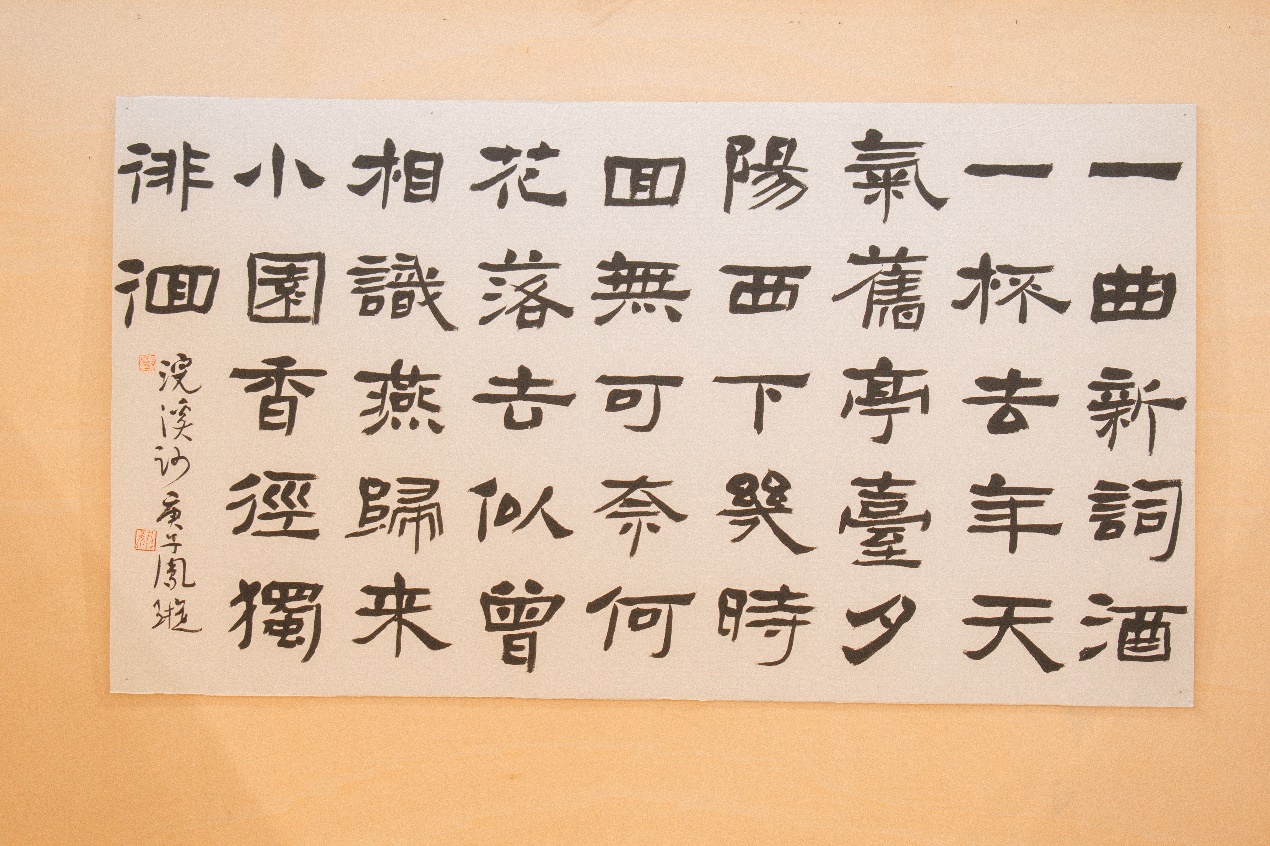 本次参展作品主题丰富,不仅有“荷叶罗裙一色裁,芙蓉向脸两边开”的古典美景,还有“君自故乡来,应知故乡事”的思乡情怀,而“从心”、“问渠哪得清如许,唯有源头活水来”则表达了独特的中式哲理。这些展品的技法也较丰富,篆书、草书、隶书、楷书,风格各异,琳琅满目。同时,部分展品取材于意大利著名诗歌,包括马尔凯大区本地诗人赛尔乔·莱昂内的《无限》,文艺复兴巨匠但丁的《神曲》,力图将中意文化融为一体。