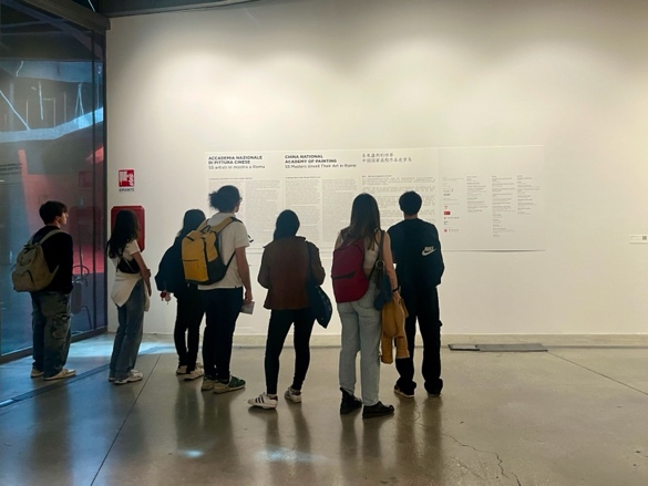 参观过程中,孔子学院的学生们驻足于一幅幅作品前,细细品味其中的笔墨韵味与文化内涵。许多学生都是第一次观看中国艺术展览,因此对每一幅作品都充满好奇。值得一提的是,展览中每幅画作都配有一个二维码,提供了中意双语的作品详细介绍和解读,学生们都表示从这一“展览策划”中收获颇多,了解到许多关于中国绘画艺术以及中国艺术的知识。
