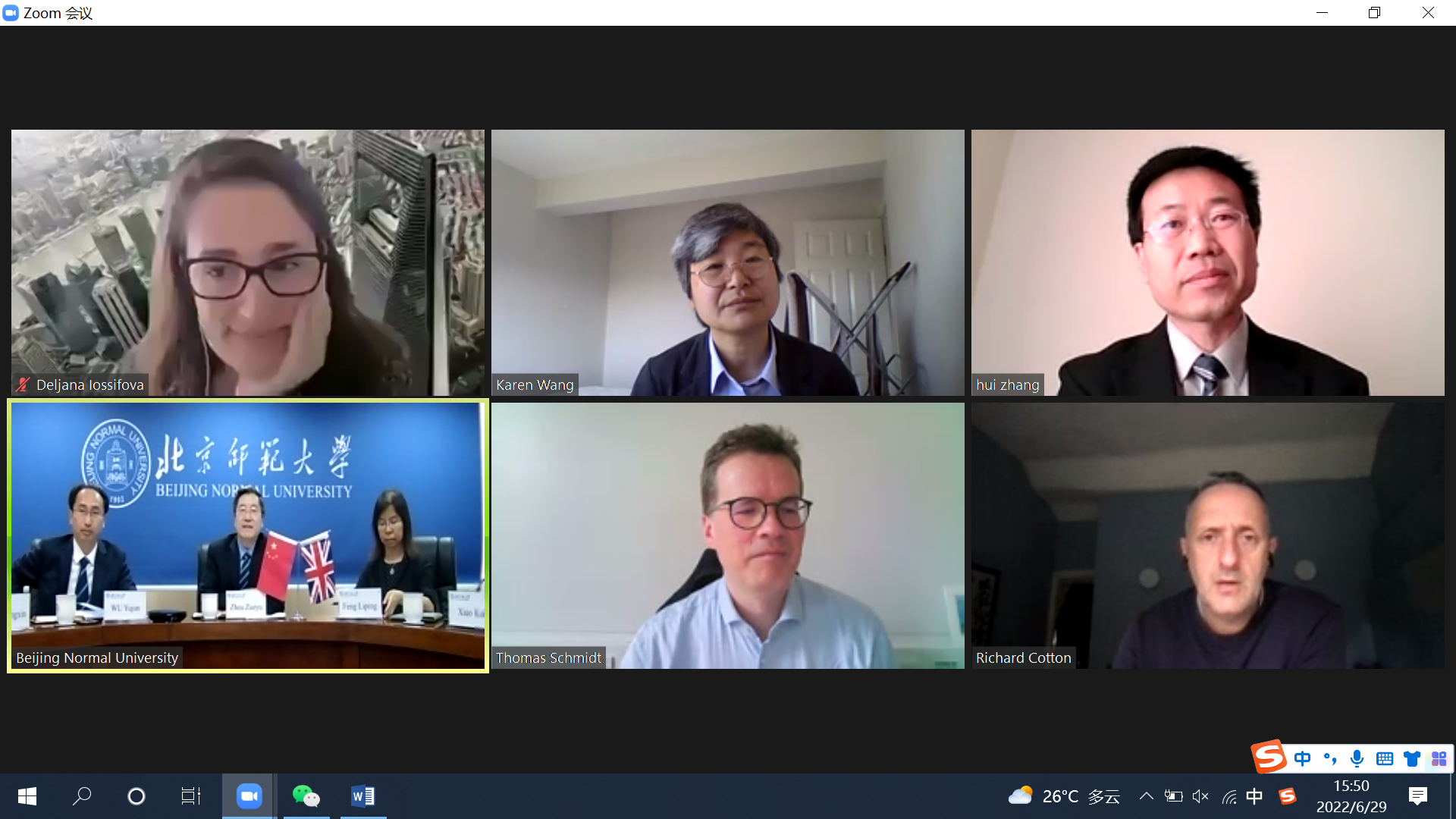 6月29日,我校与英国曼彻斯特大学举行了曼彻斯特大学孔子学院理事会视频会议。副校长周作宇、曼彻斯特大学艺术语言和文化学院院长Thomas Schmidt、国际发展部主任Richard Cotton出席会议,孔院外方院长Deljana Iossifova、外方执行院长Karen Wang、中方院长张会、国际中文教育学院院长冯丽萍及孔子学院管理中心相关负责人参会。